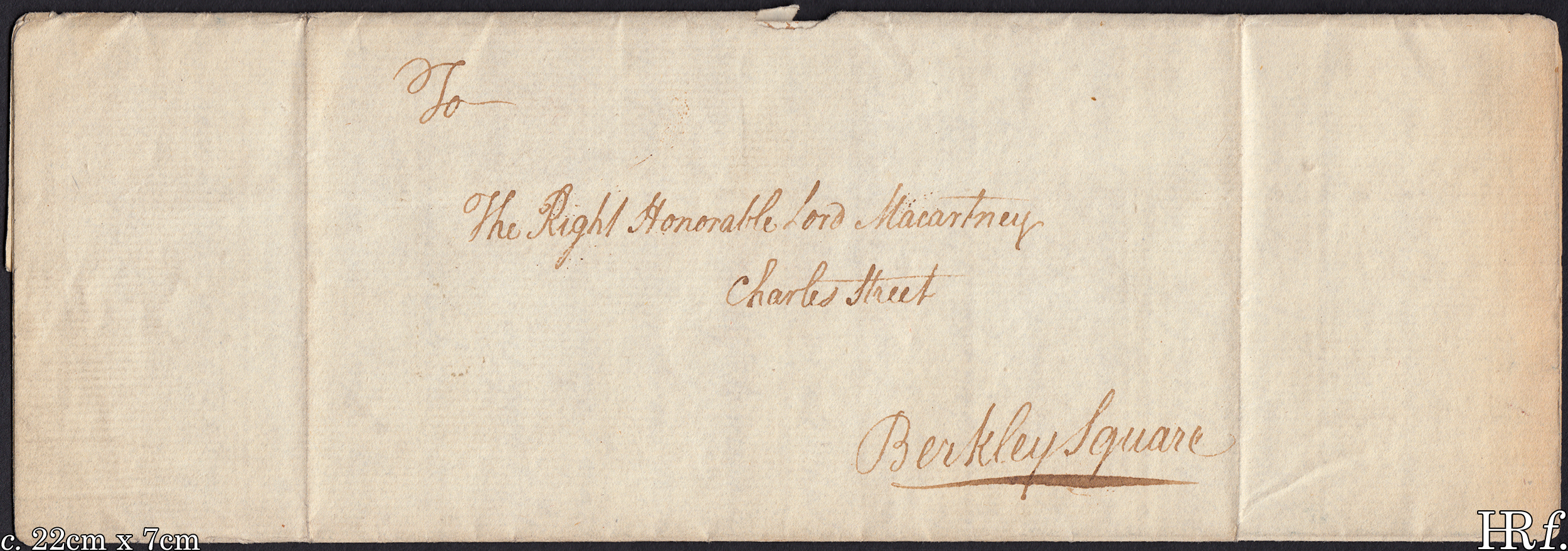 An extremely charming object here: a Mr Thomas Wallace, who appears to be entirely lost to posterity[1], writes a plaintive plea to George, Lord Macartney (as he then was), who was at the time stationed in London in his capacity as M.P. for Bere Alston, in-between his governorships of Grenada and Madras. Wallace seems to have been employed by Macartney at some previous point, and here Wallace writes to him, seeking to re-connect with his former patron, who had by this time become a very powerful, influential man. Wallace, located in the Bedford Head lodging-house on Maiden Lane, London, expounds on how shit his present situation is, reminds Macartney of their past association while flattering him dreadfully, and very obsequiously asks to know if His Lordship knows of any humble vacancies as may be available for him and his brother. The sense of desperation is wonderfully tangible, over two centuries later. Anyway this really speaks for itself and doesn't need any further describing, so let's just get to it (spelling and syntax as per original):